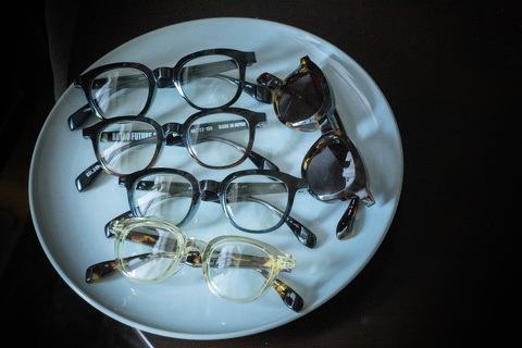 私個人的に推しポイントは、カタチもそうですが、なんといってもカラー。今では人気カラーの定番となっているツートンカラー。自社で張り合わせたツートンカラーの先駆け的存在である「col.523」(グリーン/グレー)。このカラーを筆頭にどのカラーも悩むほど、それぞれに味わい深さがあっていいのです。