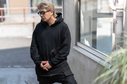 また、赤丸の箇所に面カットを施すことで、お顔にのせた際フェイスラインを整えるかのようなスッキリとしたラインが生まれます。そう、つい見逃してしまいがちな面カット1つで掛けた印象は大きく左右されます。前回の再入荷時には、スタッフ松本のスタイルサンプルをご覧いただきましたが、今回はサイズ感を見ていただくワタクシのスタイルサンプルをご用意しました。