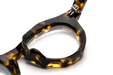 また、このようにテンプルの厚みを薄く、フロントの背面をすり鉢状に削り取り全体的に軽量化を図りました。結果として1stモデルに比べ圧倒的に掛けやすく、メガネとしての機能性も大幅に向上したモデルになりました。個人的にはクリングスパッド仕様になれば、これからも多くのみなさんからお選びいただく機会も増えるのではないかと思いっておりますが・・・