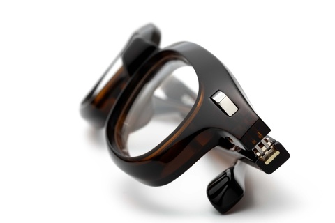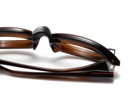 手に取った際に伝わるずっしりとした量感、そして硬質でありながらどこか温かみを感じさせるアセテート特有の肌触り、青山眼鏡が誇る熟練の職人の手によって磨き込まれた面造形がより輝きを放ちアセテートとは思えない高級感を感じ取っていただけます。