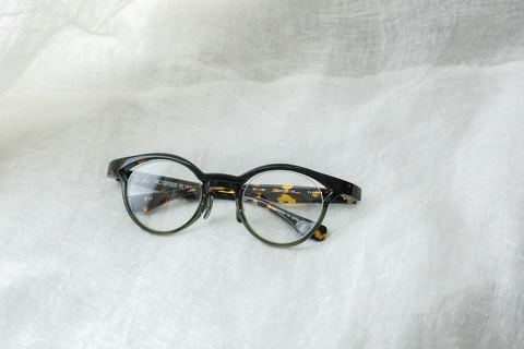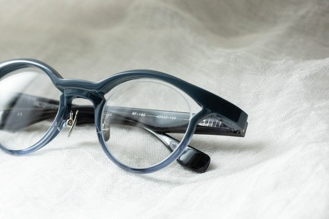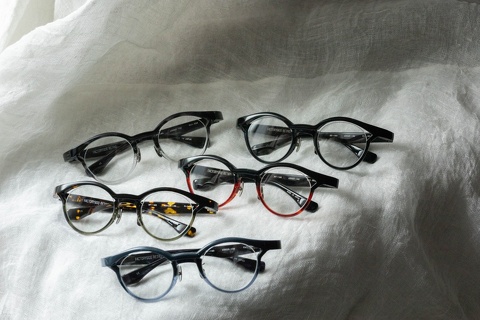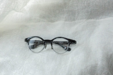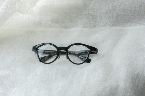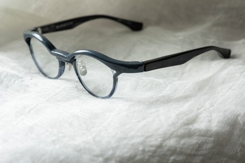 特徴的な奥行きのあるブローライン。モデルとなったのはマルマンオプティカル「Titanos」とのコラボレーションモデル「MF-001」です。デザインとしてベースにはなっておりますが、比べてみるとやはり違いは歴然です。アセテート素材のモノ、チタン製のモノ、同じ眼鏡であってもアプローチが違えば印象は全く変わるものだとあらためて感じさせてくれたモデルです。
