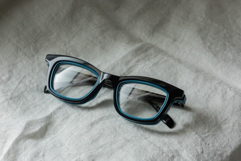 黒と鮮やかなブルーのコントラストが美しい色。発色の良いポップなブルーがチラ見えするのがとってもおしゃれです。ブルーのフレームが気になっている方におすすめ。