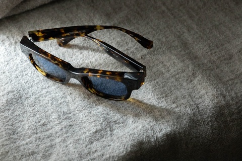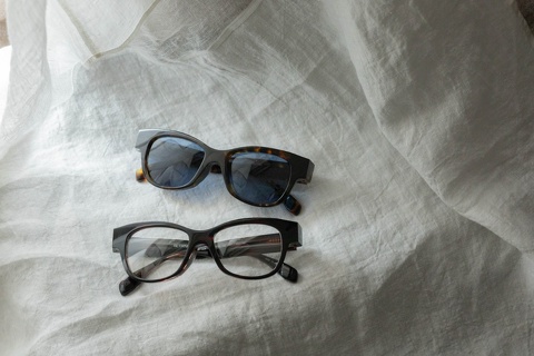 印象深いベーシックデザイン。レンズを入れ替えるだけでイメージを変えられる。1本このような分厚いフレームを持っているととても便利ですね。いろんなテイストMIXをうまく馴染ませてくれます。