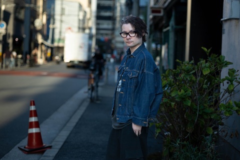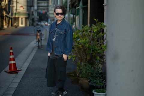 服が変化していくはざまこそ、いろんなタイプの眼鏡が欲しいところ(笑)。このような分厚いフレームの眼鏡があるととっても便利。シンプルなカタチでもこれだけの存在感はなかなかありません。