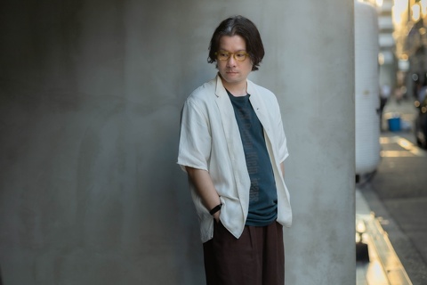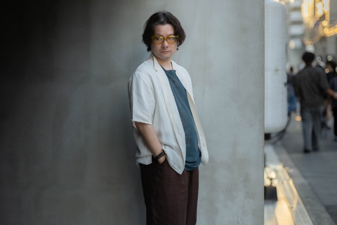 かけてみていただくと、馴染みもよくめちゃめちゃかわいいのがおわかりいただけるかと。見た目も親しみを感じやすいカラーで、悩ましく思われがちなお洋服とのバランスも比較的取りやすいイエローの生地となっています。「RF-200」のカタチのシンプルさが、カラーによってより引き立ちますね。この時の佐藤の服装は軽装ではありますが、もう少し秋っぽいダークなカジュアルなお洋服とのバランスも最高です。重ね着が楽しくなる季節に、重たくならず明るくしてくれるイエローのバランスを楽しんで欲しいなと思っています。