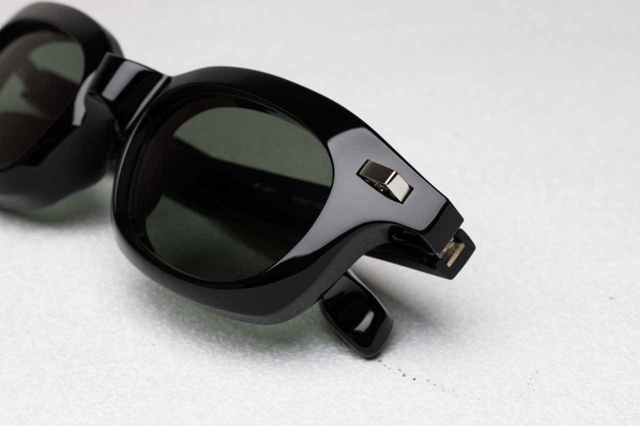 そんな「RF-041」に組み合わせたレンズは濃度83.7%のグリーン、もはや我々直営店では定番のカラーになりますが、いつの時代においても間違いのない王道なサングラスに仕上がりました。