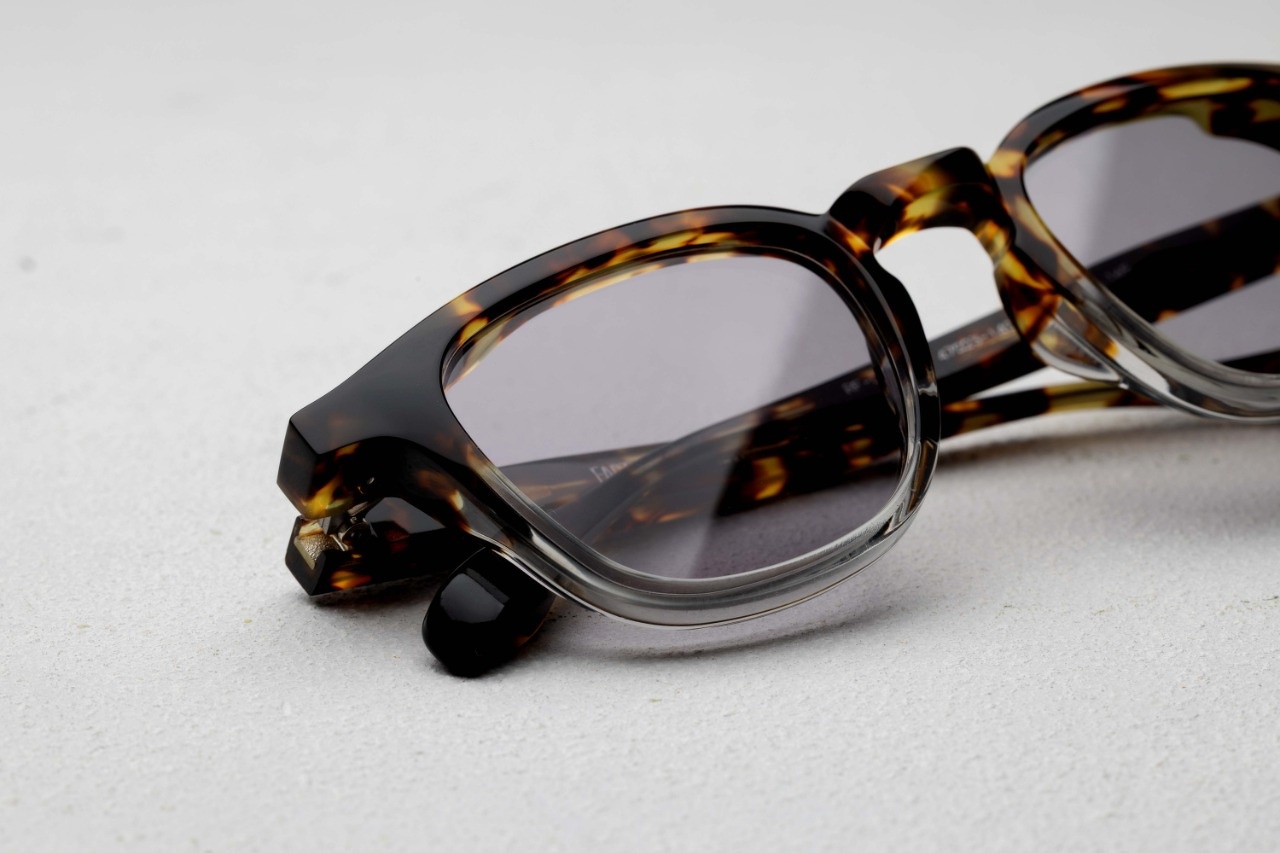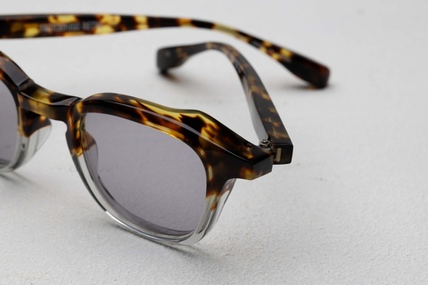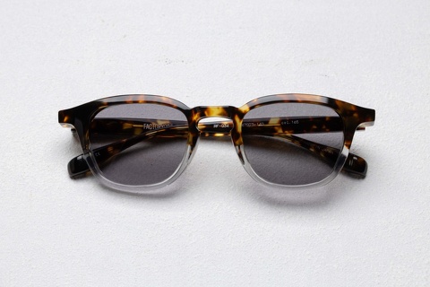 さてさて、今回チョイスした「col.165」(バラフツートン)に組み合わせたレンズカラーは濃度64%のグレー系のカラー。昨年からワタクシが愛用し、TOKYO BASEでは複数の皆さんにもお選びいただいたレンズカラー濃度48%に比べるとやや濃いカラーレンズになりますが、昨日のブログでご紹介した「RF-041」のサングラス仕様に比べると見た目の厳つさもかなり軽減されます。