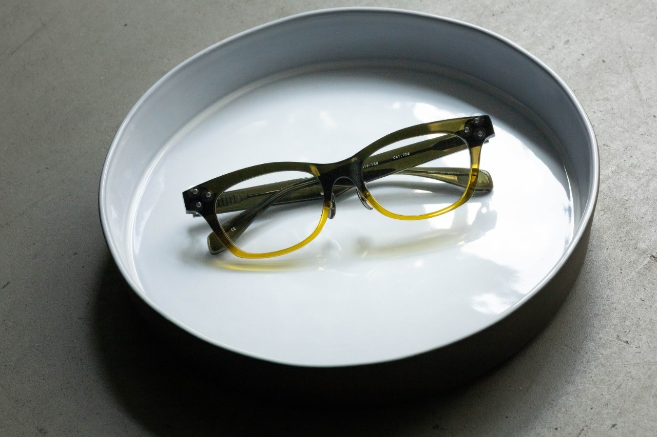 ハンサムなウェリントン型、「RF-45」。かけ心地の安定感と、ビジネスでも目を惹くデザイン。ミニマルなデザインながら、3点の飾り鋲がおしゃれをアシストしてくれます。オンラインショップ限定カラーは、ここ最近仕様されているカラー「col.756」。深い奥行きのあるモスグリーンと目元の悩みを吹き飛ばしてくれるようなヘルシーなイエローのツートンカラー。ナチュラルなカラーの組み合わせながら、決してほっこりはしない繊細なカラーです。