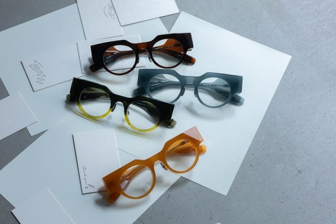 上から、そして裏から見るとよくわかるのですが、フロントの厚みも変えいるため、角度によって楽しむことができます。過去のブログでは、サングラスとしてカッコよくかけていただくことをおすすめすることが多かったと思いますが、眼鏡としてかけると”カッコカワイイ”デザイン。そう、柔らかくもかけていただけるのです。