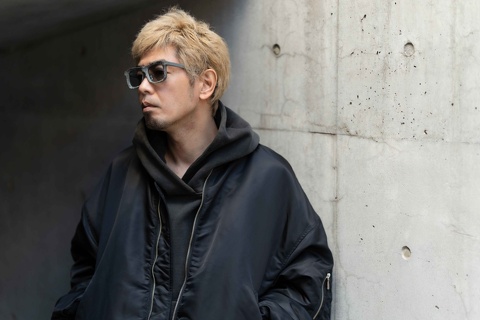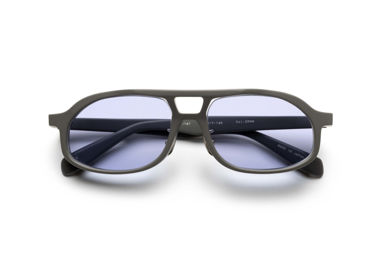 もともとはゴリゴリのサングラススタイルとして発表した「RF-067」ですが、今回はあえて濃度48%のブルーグレーを組み合わせてみました。このカラーレンズはワタクシ自身が見本染色にて使用していたこともあり、昨年は1年を通して多数の皆さんにお選びいただいた人気カラーになります。