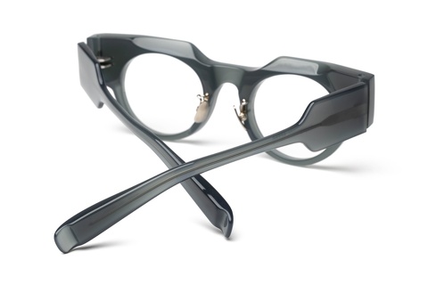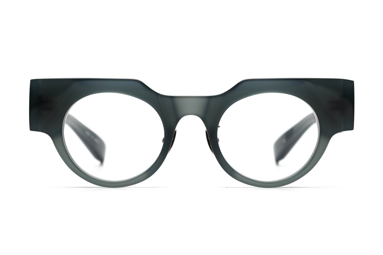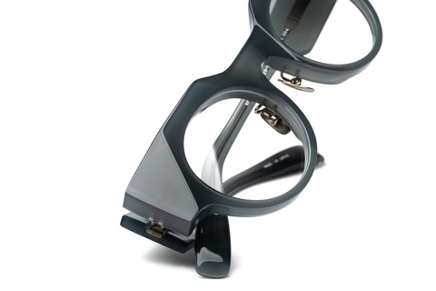 過去のブログでもスタイルサンプルにて実際に掛けた印象もご覧いただきましたが、なかなかハードなデザインゆえ、掛こなしのハードルもやや高めであり、くすみカラーに該当する「col.594」(ブルー)は髪色・レンズカラーなど、なにかしら工夫をしたいところです。