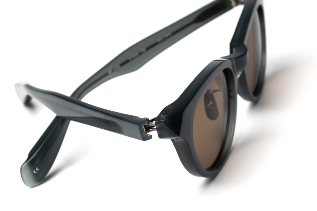 智元に施したさりげない面カットが、フォックス型特有のきつい印象を軽減させる1つのポイントになります。極力シンプルにフォックス型の美しさを活かしつつも、デイリーに取り入れやすいデザインバランスを追求しています。そう、まさに生活の一部になるようなサングラスです。