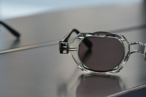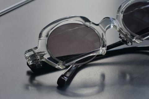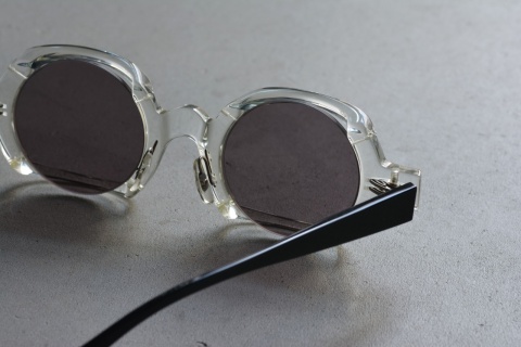 ラウンド型メガネの上下のリムを、外側に向け“折る”という非常にシンプルな構造でカタチづくらけた「fa-1111」は、小文字シリーズのテーマがより具現化したモデルといえます。