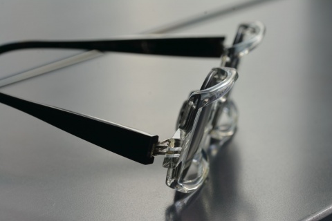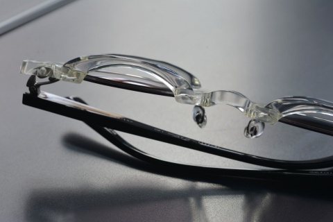 本来であればラウンド型のリムを折り曲げることで正面から見るとスクエア型に。