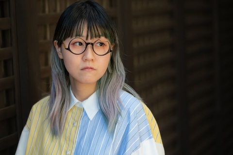 「col.119」と同じく下から上に変化するグラデーションのパープル、フレーム単体では黒に近しく感じますが、テンプルに使用したオレンジが差し色になりカジュアルな印象に。また「col.119」にも同じことが言えますが、「fafj-002」の淡い色合いを苦手とする皆さんには、こちらのようなメリハリの出るハッキリとしたカラーをお試しいただきたいところです。