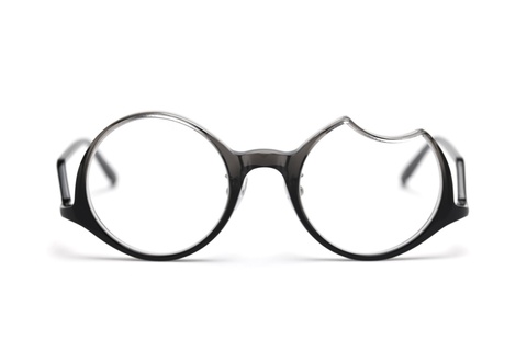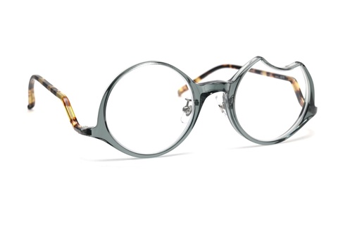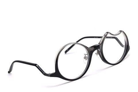 黒ならではのハッキリとした印象に比べ、グラデーションカラーによって見た目も柔らかく、上弦の欠けた月をイメージした左レンズのデザインもフレームカラーの変化によって、見た目以上に馴染みやすくお顔に溶け込みます。