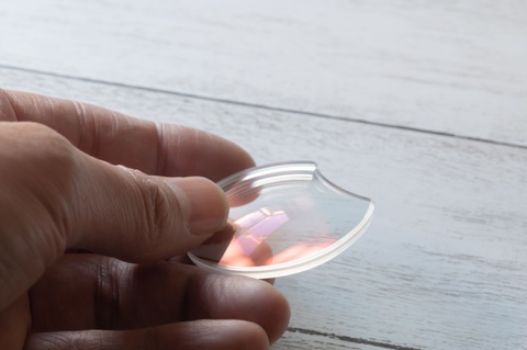 独特な左レンズの形状により、店頭でレンズを削ることが難しく、一般的なメガネとは異なり、レンズメーカーの工場にて加工を行います。もちろん、強化コーティングやブルーライトカット、カラーをつけることも可能です。