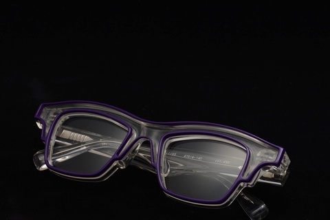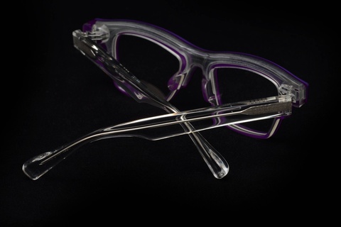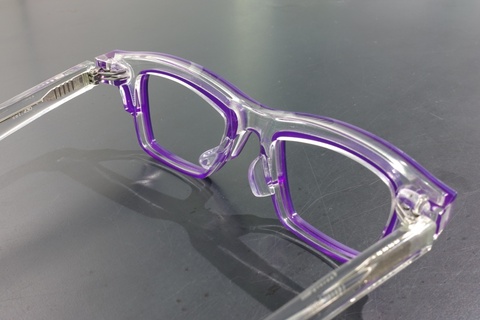 カラーはクリアベースのcol.430。パープルのラインは派手でもなく、沈み過ぎないバランスのよく、先述したクールな印象を後押しするカラーです。シンプルに魅せたフォルムはスタイリングも想像以上にしやすく、今回お求めいただいたお客様も、元々はRF-004をお探しでご来店いただいておりましたが、いつの間にかこのモデルに夢中になっていました。