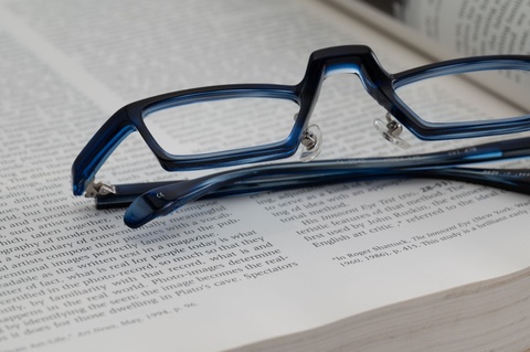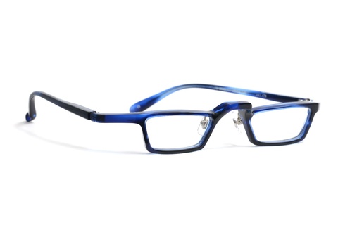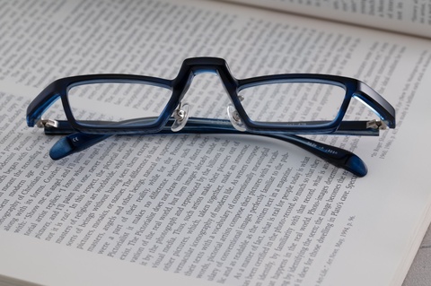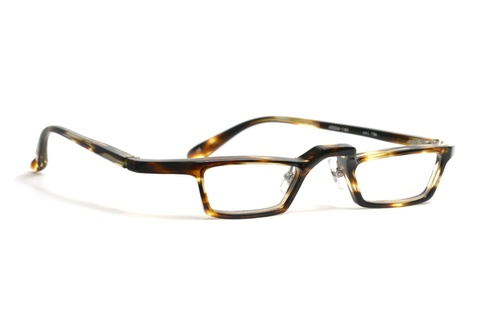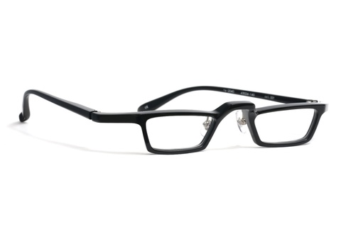 冒頭でご覧いただいた福山さんのお写真でお分かりのように、一般的なメガネとは異なり若干メガネを下げたポジションで掛けることが前提となります。その分、ブリッジの位置も高くレンズの天地幅も20mmと極端に狭くデザインされています。