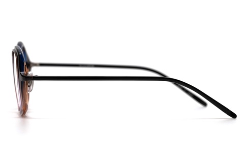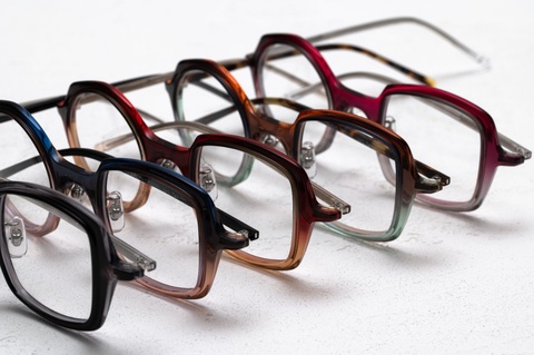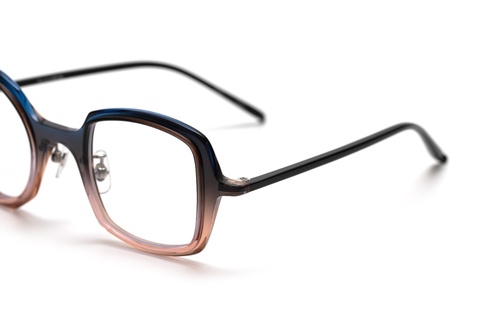また、青山眼鏡独自の技術を用いカタチづくられたレンズシェイプを縁取るラインが、見る角度、光の当たり方によってうっすらと浮かび上がり、加えて細部に施された面カットにより、シンプルに見えるフロントに立体的を宿します。こういった細部への拘りが、一見ポップに見えるデザインのイメージを覆す顔馴染みの良さを生み出します。
