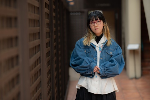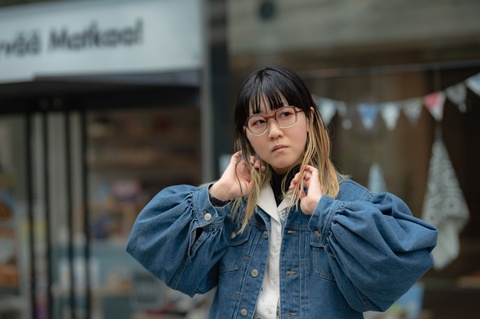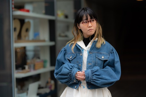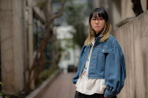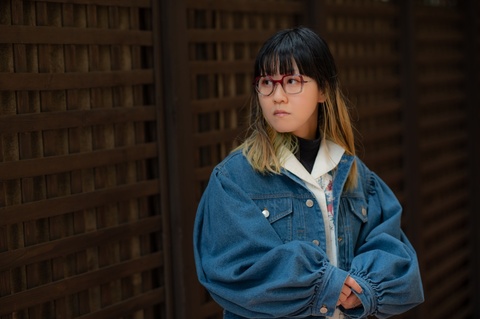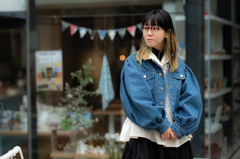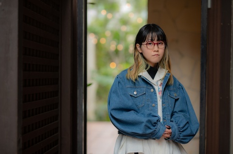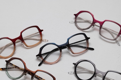 非対称のデザインをより引き立てるポップで発色の良い色使いは、メガネの楽しさを再認識させてくれるような組みわせです。しかし、赤紫にグレーを組み合わせたツートンカラーによって、見た目以上に掛けやすく、メガネだけが浮いて見えてしまうことを防ぎます。