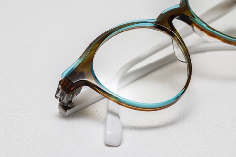 このように、レイヤード構造に光が差し込むことで、見る角度によって変化する特徴的な色使いこそ「fa-1133」「fa-1134」の大きな見所であり、アセテートフレームの色合いに新たな可能性をもたらしました。まさにfactory900だからこそ表現できる色使いであり、factory900 labの世界観が存分に味わえるモデルということは間違いありません。