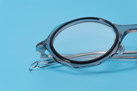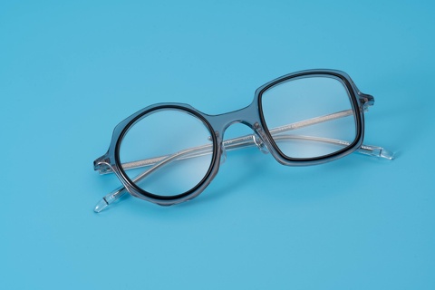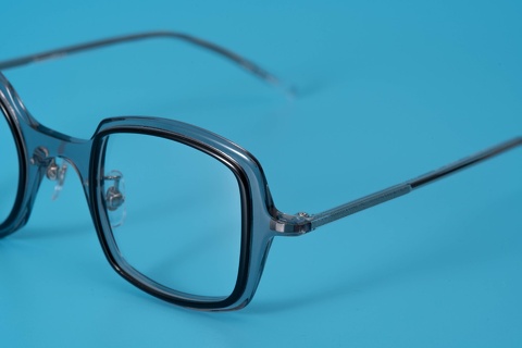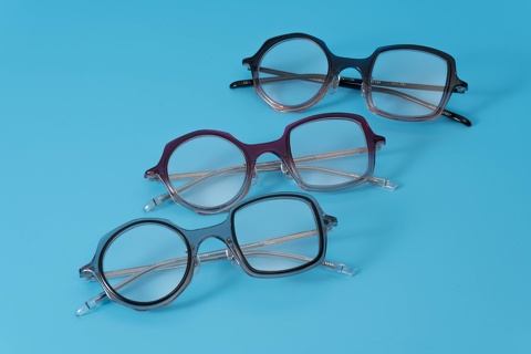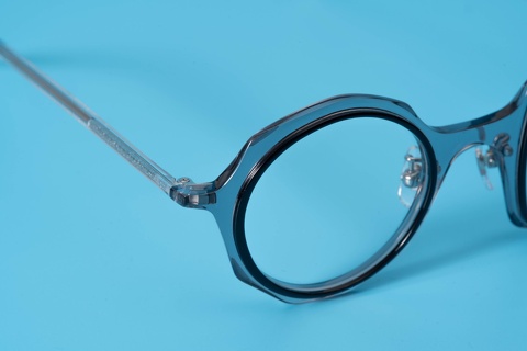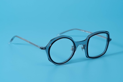 特に今回ピックアップした「col.039」(グレー/黒)は、ベースのカラーが肌馴染みの良いクリア系ということもあり、一般的に掛けこなしのハードルが高いと思われがちな左右非対称のデザインも驚くほど顔に馴染み、ここ最近目にするようになったインポートブランドをはじめとする丸四角とはまたベツモノです。