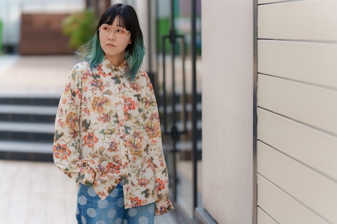 いかがでしょう?このちょっとした違和感がアクセントとして皆さんの記憶に残ります。とはいえ、実際に掛けこなしのハードルはインポートブランドのアシンメトリーデザインに比べると圧倒的に低く、この左右非対称の違和感と馴染みやすさのバランスが絶妙です。また、前回「fafi-002」col.911(クリアピンク)の入荷時に撮影したスタイルサンプルと比較していただくと、「fa-1151」の特徴がさらに分かりやすいかと思います。