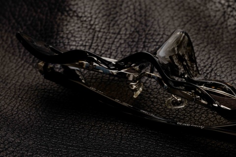 このように、factory900 labの”マスクシリーズ”として大文字シリーズとはことなる厚みの薄さを活かしたドレープ状のデザインは、青山眼鏡の唯一無二と呼ばれる技術によってカタチになりました。まさにセテート素材の常識を覆すそのデザインは、小文字シリーズのコンセプトモデルと呼ぶに相応しい仕上がりです。