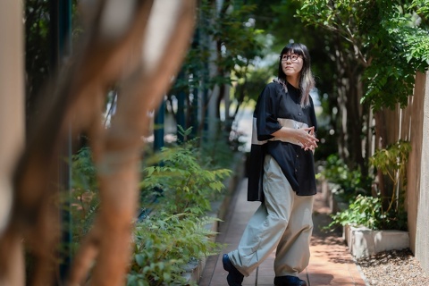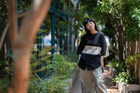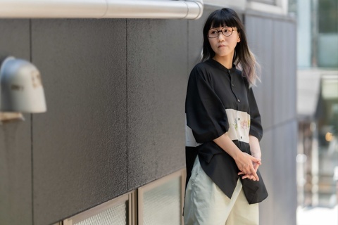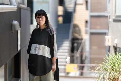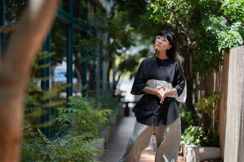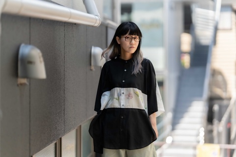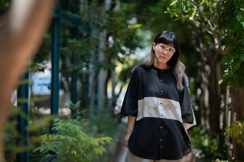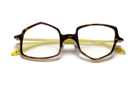 ご覧のように、どんなお洋服にも合わせやすいバラフをベースに、テンプルにはバウムさんのショップカラーであるイエローを用い、バランスのとれた配色がデザインのインパクトを中和させ、日常使いのメガネとして幅広く活用いただけるようになっています。