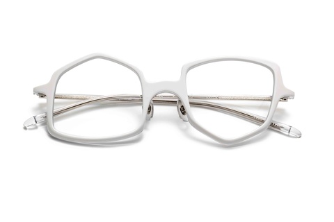 ご覧のように左右非対称のシェイプをより引き立てる「col.872」(白/グレー)、なかなかのインパクトではありますが、少し距離をとってもその存在感は損なわず、非常にアーティステックな印象です。その分お顔覚えも良くなることから、ハマる人にどハマりする、そんなカラーになりそうです。