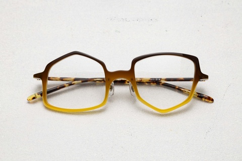 台湾の老舗眼鏡店、士林國賓眼鏡さんとのコラボレーションというかたちで企画された”エメレションランチ11”は、漢字で日本の「日」を表現した四角形、台湾の「台」を表現した五角形をベースに、フロントそのものに緩やかにうねりをつけ、光の当たり方によってコントラストが生まれるようデザインされています。