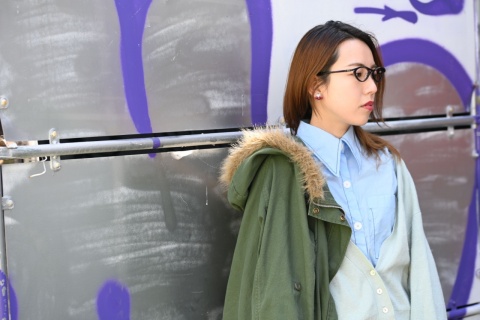 ちなみに、先日発売開始になった新作「FA-380」「FA-381」をご紹介するうえで、同じくg.g.WAREHOUSE 南堀江のスタッフ村上さんにモデルになっていただきました。