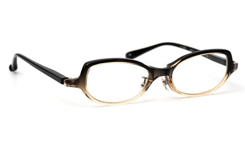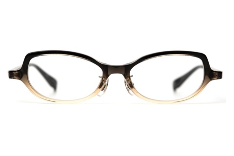 ご覧のように、フォックス型をイメージさせる下から突き上げるようなレンズシェイプ、一般的なメガネに比べやや下に設定された智元が1つのポイントです。レンズの天地幅も30mmとクラシカルなデザインに比べると明らかに狭く、この10年を振り返ってみてもトレンドとは相反するデザインに見えるかと思います。