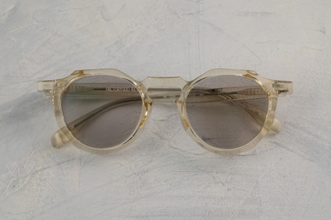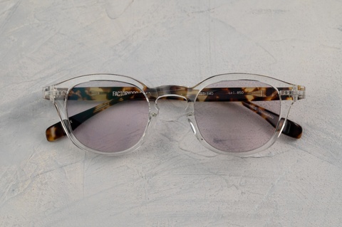 この数年「col.850」クリアと同様に人気の「col.880」(キハク)、レトロシリーズでは定番の「RF-030番台」から天地幅の広い「RF-035」をチョイス、肌馴染みの良いフレームカラーとメリハリをつけるために、レンズカラーはグレーを組み合わせました。同じ濃度25%ですが、眩しさを1番感じなかったように思います。どういったフレームカラーにも合わせやすく、定番と呼べるカラーではないでしょうか。