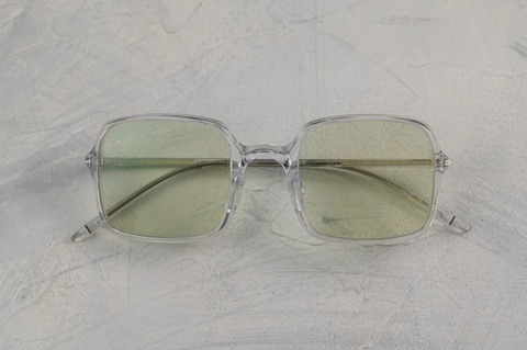 ウェリントン型の「col.001」(黒)に「MSSY25」組み合わせ。結果的に王道ともいうべきサングラスに仕上がりました。本来イエロー系のレンズは日差しのもとでは眩しく感じますが、これが意外と違和感なく掛けれます。個人的には見た目以上に使いやすいカラーという印象です。