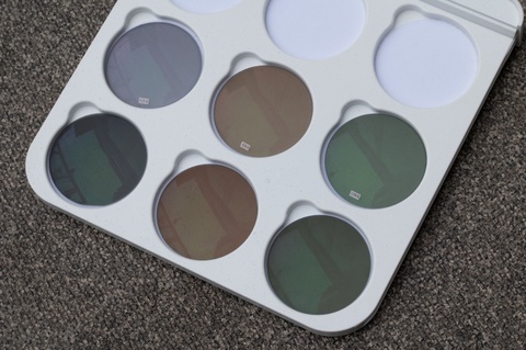 至近距離で蛍光灯にレンズをかざすこと約20秒、このように濃度に変化がみられました。(レンズの濃度や露光量に関しては編集を行っていません)