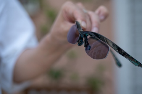 ただし、ワタクシ自身、レンズ越しの見え方に関して全く色ムラは分かりません。また、「RF-080」など、色ムラが全くといっていいほど色ムラが発生しないモデルも存在します。調光レンズに対する期待値も含め、個人差はあるかと思いますが、フレームの選択にもご注意ください。