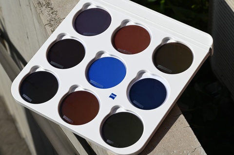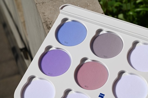 紫外線に反応して発色する紫外線調光とは異なり、車の運転時にも発色する、より機能性が高まった点が人気の要因といえます。とはいえ、取扱いスタート時からご好評をいただいていたZEISSの紫外線調光レンズ ブルーは、今もファンの皆さんが多く、すでに調光レンズを使ったことがある皆さんにも、1度は使ってみたいとの声も多数いただいております。上の写真の通り、他のカラーに比べ1つだけ明らかに色合いが違うのが一目でお分かりいただけると思います。→改めて他のカラーと比べてみるともはや異質な存在ですね(笑)