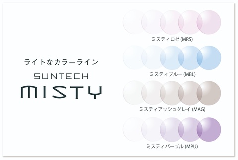 また、コロナ禍において人気が高まったSUNTECH MISTY(ミスティ)のサンプルも全カラーご用意をしております。