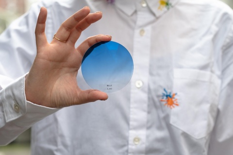 なかでも目を惹く鮮やかなブルーのグラデーションカラー。早速お客様より同じZEISSの調光レンズ”PhotoFusion”ブルーとの比較が見てみたいとのお声をいただきました。スタッフブログでも度々ご紹介している調光レンズの”PhotoFusion”ブルーは、発色時の色合いが鮮やかで、我々直営店では、ZEISSの調光レンズのなかで1番人気のカラーになります。