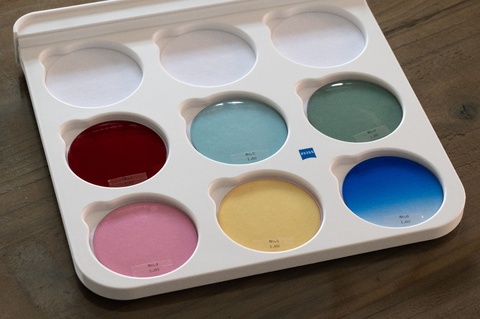 そう、今回のキャンペーンでは、ZEISSのカラーの全44色に加え、BASE限定となるスペシャルカラーをご用意しています。スペシャルカラーのカラーバリエーションは全6色、ご覧のように、アリアーテトレスをはじめ、一般的なカラーサンプルでは見られないような発色の良い鮮やかなカラーとなります。