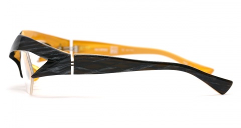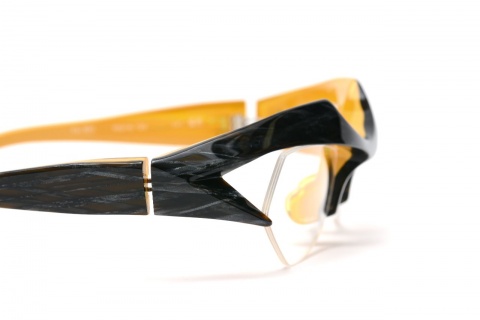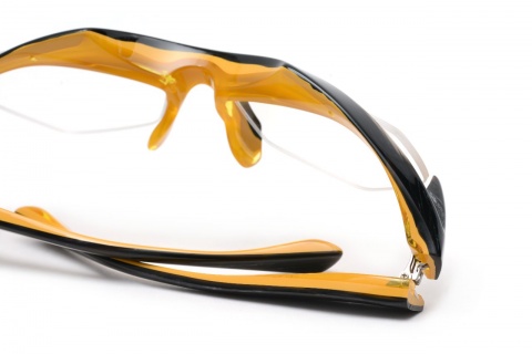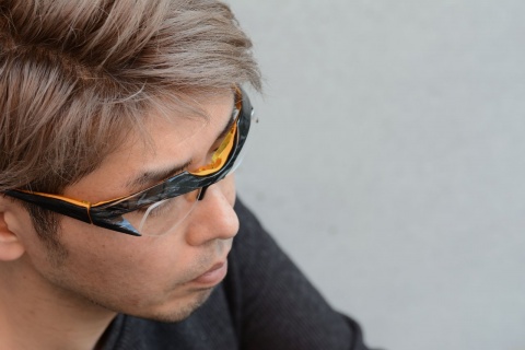 フレーム単体の見た目とは裏腹に、実際に掛けてみると非常にシックな印象に。気になる背面の黄色は、ひっそりと顔色を明るく照らします。