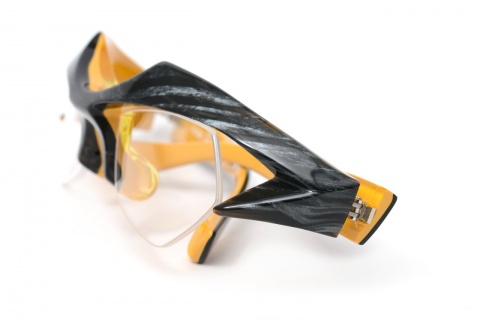 なんといってもカラー名である”猛虎”の名の通り、背面の黄色がアクセントになり、重厚な「FA-370」の造形に華をそえます。それでいて、掛けてしまうとコーディネイトを妨げないその絶妙な配色のバランスは流石の一言につきます。