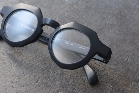 「RF-026」を彷彿とするシンプルなカット面によってカタチづくられた「RF-027」は、クラウンパント型とも異なるFACTORY900らしい多角面で構成されており、まさに他にありそうでないクラシックフレームとして皆さんの魅力を引き立てます。