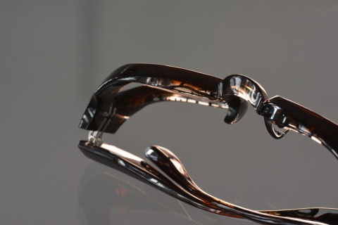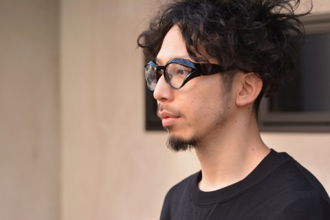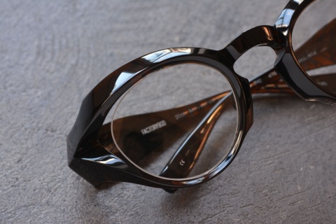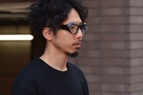 もともとソリッドなモデルということもあり、硬質なイメージのある「FA-392」ですが、ビンテージ生地の透け感が加わることでフレーム単体での見え方はもちろん、お顔に合わせた際の表情にも柔らかさがプラスされます。