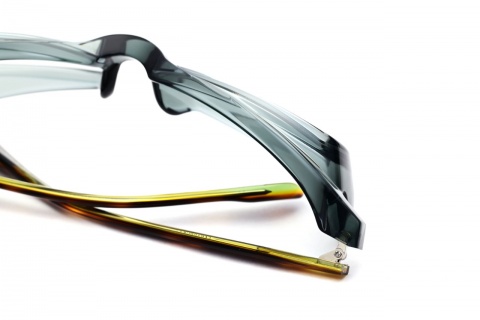 今回の限定モデル「FA-062」は、今年の春からレトロシリーズにて取り入れた「col.577」(ペールグリーン)に、テンプルは本社で眠っていたビンテージ生地を採用し、より価値観のある仕上がりとなっています。