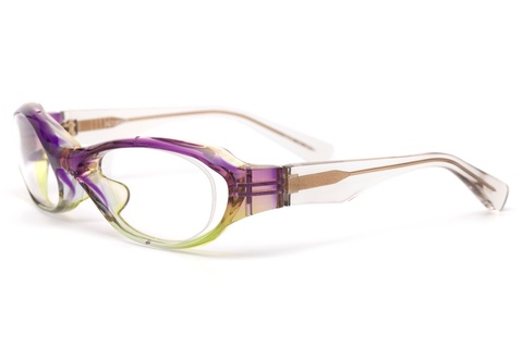 パープルとイエローのツートンカラーですが、スタイルサンプルをご覧の通りイエローは肌に馴染みます。そこで上部のパープルに合わせ、同系色のカラーレンズを組み合わることでメリハリが生まれます。ほんのりとアイメイクを施すかのようにカラーレンズを組み合わせ、エメレションランチ08をカスタマイズするのもおススメです!