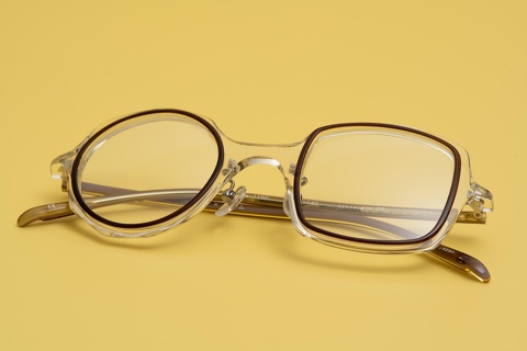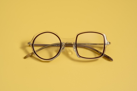 背面のクリアカラーが顔に馴染むことで、左右非対称のシェイプをトレースするように残した縁取りが浮き上がるようにご覧いただけます。丸・四角とハッキリとしラインにも拘わらず、見た目以上にお顔に馴染みやすく、ポップでありながら実用性も兼ね備えた、レギュラーカラーにはないスペシャルなカラーになります。