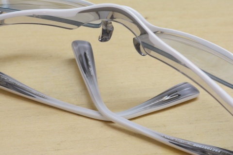 そんな白いフレームが汗や経年変化によって起こる黄ばみについて、過去のブログでも取り上げてきましたが、今回のケースは髪を染めたことでフレームに色移りしてしまったとのこと・・・